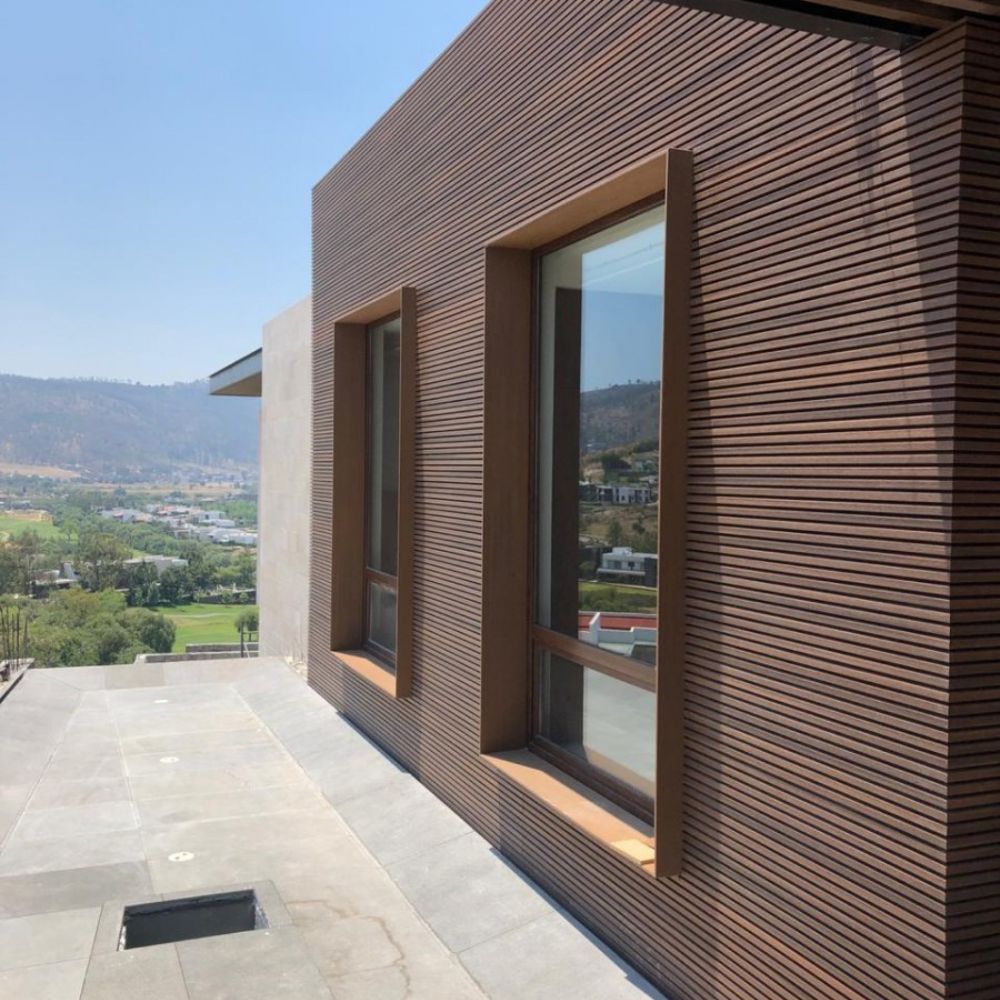 Kompozytowa elewacja o specjalnych proporcjach drewna wraz z polietylnem zatopionej w dodatkowej osłonce sprawia, że elewacja jest niezwykle wytrzymała, trwała na zabrudzenia, i zachowuje kolor latami, bez żadnej dodatkowej impregnacji.