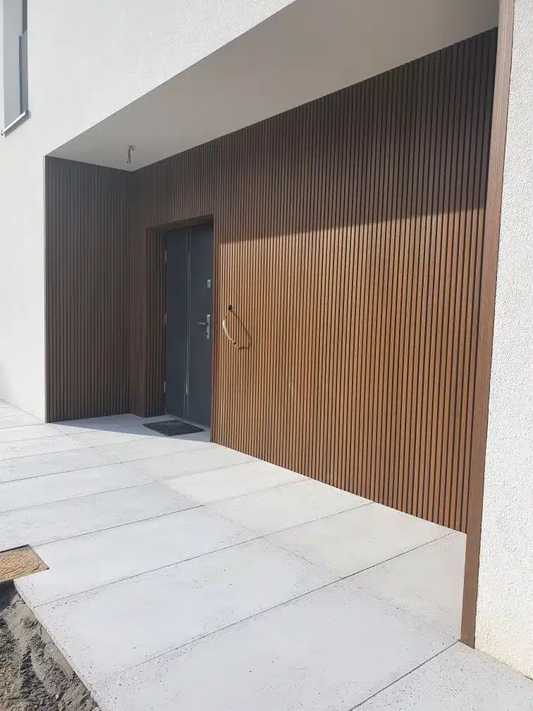 Lamelowa moda zdominowała nasze wnętrza domów, dlatego wielu projektantów wprowadziła lamele również na zewnątrz budynku.